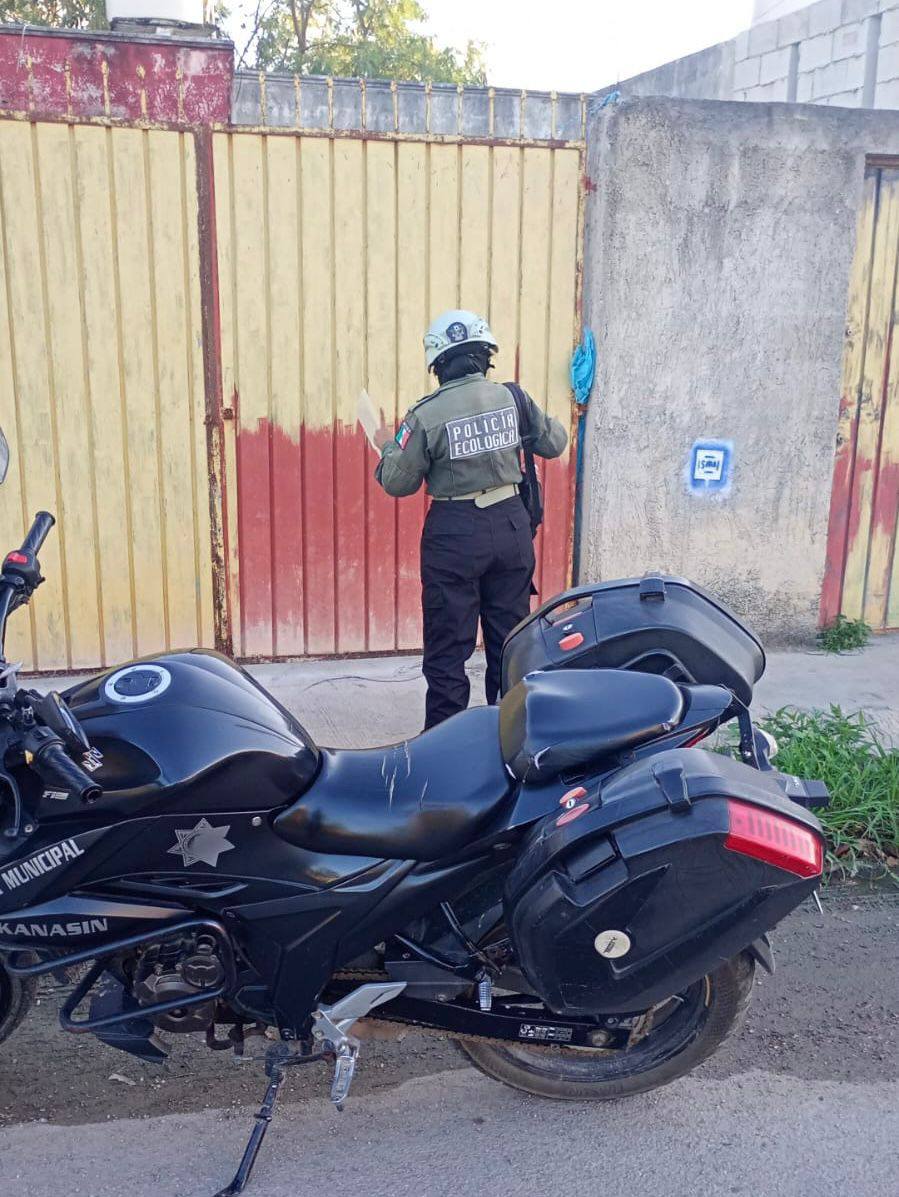 Policía Ecológica de Kanasin multa a propietarios de predios que tiraban agua jabonosa a la vía pública