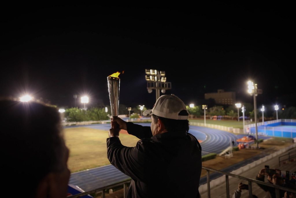 Posteriormente, Díaz Mena encabezó el encendido del pebetero olímpico junto con el custodio del Ritual del Aniversario del Estadio General “Salvador Alvarado”, Yohjanzen Leonel Macías Medina, y se realizaron 87 vueltas en la pista de tartán, así como en la alberca olímpica.