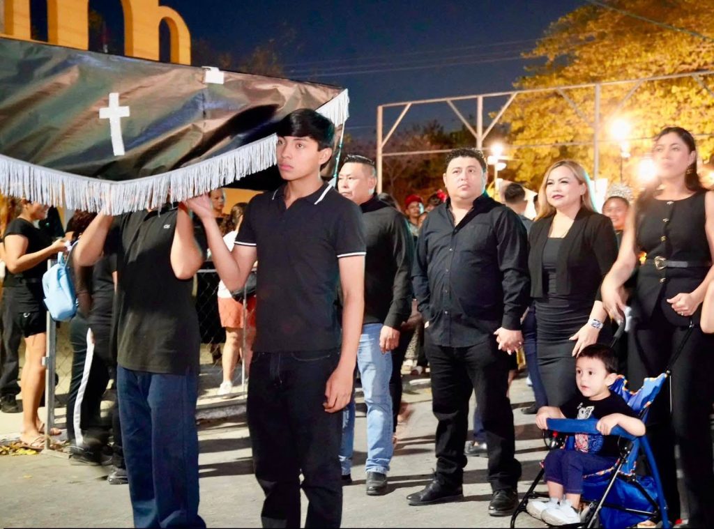 El alcalde Edwin Bojórquez Ramírez y su esposa Raquel Balam Rocha de Bojórquez, acompañados de los soberanos de las diferentes categorías, así como de regidores, salieron desde el cementerio hasta los bajos del Palacio Municipal para esta tradicional jornada que pone fin a los festejos carnestolendas.